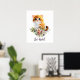 Jolie affiche de chaton levant les yeux avec des fleurs à l'aquarelle et citation personnalisée