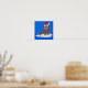Cette affiche présente une image graphique d'un joli petit morse de Noël. Le Walrus a une fourrure brune avec de grands yeux noirs et des défenses blanches. Il est assis sur un iceberg au milieu de l'océan et porte un casquette festif rouge et blanc. Le morse est entouré de jolis flocons bleus octogonaux qui tombent tout autour.