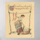 art vintage avec peinture pour la comptine rime "chanter une chanson de six pence" illustrée par l'artiste anglais walter crane, avec la servante dans le jardin accrochant les vêtements.
