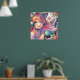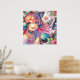 Mignonne fille anime portant des casques avec des oreilles de chat et des patins à rouleaux. Poster de patineuse rose et bleu mignonne pour les filles de gamer ou les amateurs de musique ou ceux qui aiment le thème de la fureur.