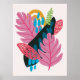 Jolie illustration d'art moderne avec des feuilles roses et des symboles de la nature. Paysage simple semi-abstrait pour la décoration de maison. Ajoutez cette affiche graphique moderne à vos murs de maison. Idée cadeau parfait pour l'anniversaire, nouveau propriétaire. pour les femmes qui aiment le décor maison. Affiche artistique moderne