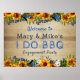Cette affiche de fête de fiançailles rustique JE FAIS DU BBQ aidera à accueillir vos proches à votre fête de fiançailles. Cette jolie affiche de bienvenue de fête de fiançailles au thème de bois de grange rustique présente un bois clair avec une rangée de jolis tournesols boho et de plumes bleues en haut et en bas de l'affiche de bienvenue à la fête de fiançailles. Personnalisez avec vos deux prénoms pour un beau charme country boho. D'autres polices et couleurs sont disponibles.