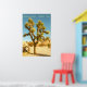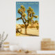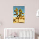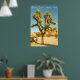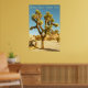L'image présente un arbre Joshua qui occupe une place de choix dans un paysage désertique. L'arbre a un tronc épais, brun et des feuilles verts épicés, regroupés au bout de ses branches. L'arrière - plan se compose d'un ciel bleu clair et d'un sol sablonneux avec des rochers épars et une végétation basse. L'ambiance générale est sereine et aride, et saisit l'essence de l'environnement désertique.