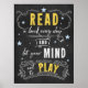 L'artiste a créé un message amusant pour cette affiche de la journée de lecture qui dit : "Lisez un livre chaque jour et laissez votre esprit jouer" ©Doreen Erhardt. Créé dans un thème de tableau de bord avec des doodles et des accents. Parfait pour les salles de classe, les bibliothèques, les groupes de lecture et les clubs de lecture.