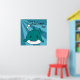 Bleu et blanc amusant requin caricaturiste aux petits yeux noirs ovale et une rangée de dents blanches pointues. L'arrière - plan est de rayures bleu clair et foncé rayonnant du coin supérieur gauche. Au-dessus du requin se trouvent les mots Have A Jawsome Day en texte noir.