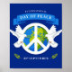 Le design de la Journée internationale de la Paix intègre une palette de couleurs paisibles de bleus, verts et blancs, créant une atmosphère apaisante. Au centre, une colombe porte gracieusement une branche d'olivier, symbolisant la paix et la réconciliation. Autour de la colombe, un globe stylisé reflète la nature globale de l'époque, mettant l'accent sur l'unité entre les nations.