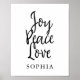 Personnalisé Joy Peace Love, imprimé d'affiche inspirant. Il ferait un grand à n'importe quelle chambre ou comme un cadeau pour un membre de la famille ou un ami avec le bonus supplémentaire que vous pouvez personnaliser en ajoutant un nom et customiser la couleur arrière - plan.