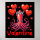 Poster Joyeux Calmar Saint-Valentin tenant coeur Bylloons