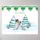 Poster Joyeux Noël ! Snowman avec chat et chiot