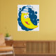 Un joyeux visage de lune jaune portant un casquette bleu et blanc. Ce design semble vraiment efficace sur ces Poster