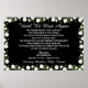Une élégante célébration de la vie en mémoire funéraire avec des fleurs blanches et un poème.