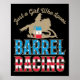 Cadeau de course en tonneau pour cowgirl barrel racer dans des couleurs patriotiques rouge, blanc et bleu. Parfait pour les amateurs de course de baril ou cavalier équestre qui monte cheval barrel cheval dans rodéo ou western show