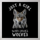 Une belle image de loup avec le texte : "Juste une fille qui aime les loups"