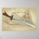 Illustration d'un Kampilan, une épée longue de Moro. Textes en Alibata, Pilipino et anglais.