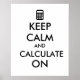 Ce modèle d'élément calme a une image d'une calculatrice au lieu du logo de couronne calme. Il dit Conserver le calme et Calculer sur. Ajoutez votre propre texte dans le modèle pour personnaliser, si vous le souhaitez. Vous pouvez modifier le style ou la couleur de la police pour customiser. Ou changer le style et la couleur de l'élément, et parfois la forme. Ou ajoutez ou modifiez une couleur arrière - plan. C'est un cadeau amusant pour les comptables, les professeurs de mathématiques et les amoureux des mathématiques. Plus personnalisée gardez des chemises et des designs calmes chez Keep Calm and Your.