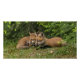 Deux trousses de renard rouge sont représentées à l'ombre des arbres à feuillage persistant.