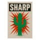 Un visuel percutant : cactus vert éclatant sur fond de pointes rouges et noires, avec le mot "SHARP" en capitales. Cette affiche fusionne esthétique punk, symbolique végétale et puissance graphique. Une déco qui affirme.