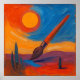 Un paysage surréaliste et vibrant où une brosse géante peint une rivière brillante sous un ciel tourbillonnant, inspiré par Van Gogh. La scène mêle des éléments d'imaginaire et de créativité, captant l'essence de l'expression artistique et de l'imagination.