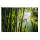 Un rendu numérique d'une forêt de bambou avec la lumière du soleil qui traverse le bambou.