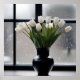 Les Tulipes Blanches Sont Imprimées Devant Une Fenêtre Froide Dans Un Vase Noir