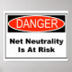 Ce panneau d'avertissement vous invite à faire preuve de prudence : "Danger, La Neutralité Du Net Est En Risque". Si l'équité et la neutralité traditionnelles d'Internet sont perdues, les gros profits prennent le dessus, poussant les petits entrepreneurs sur la touche. Soyez conscient des conséquences pour vos libertés et faites entendre votre voix à vos représentants élus du gouvernement.
