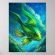 À l'image, un poisson vert vif nage gracieusement à travers un ciel bleu vif, défiant les lois de la nature. Les écailles du poisson brillent à la lumière du soleil, reflétant les nuances d’émeraude et de chaux. Ses nageoires sont larges, créant un sens du mouvement et de l'élégance en glissant dans l'air. Des nuages d'un blanc éclatant dérivent dans l'arrière - plan, renforçant l'atmosphère surréaliste de la scène. La combinaison du poisson et du ciel crée une image fantasque et enchanteresse, invitant les spectateurs à imaginer un monde où tout est possible.