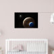 Le concept artistique de la planète géante du gaz Kepler-1625b et une lune qui l'accompagne suspectée. Estimée comme aussi grande que la planète Neptune, la lune est différente de tout ce qui se trouve à l'intérieur de notre système solaire. Il aurait pu se former à travers un processus différent de celui connu pour les près de 200 lunes du système solaire. La planète et la lune orbitent l'étoile Kepler-1625, située à 8000 années-lumière dans la constellation de Cygnus. L'étoile parente est semblable à notre Soleil, et la planète et la lune sont situées dans sa zone habitable où les températures permettent à l'eau liquide de rester stable. Cependant, les deux mondes sont des corps gazeux et ne conviennent pas à la vie telle que nous la connaissons.