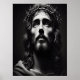 Cette représentation en noir et blanc fascinante capture Jésus-Christ qui regarde vers le ciel avec une profonde expression de dévotion. La couronne complexe d'épines au-dessus de Sa tête symbolise Son sacrifice rédempteur. Des textures expérimentalement détaillées accentuent ses cheveux fluides, son visage patiné et ses traits solennels, mettant l'accent sur sa nature divine. Le contraste de la lumière et de l'ombre augmente la profondeur émotionnelle de la scène. Cette image intemporelle invitation la contemplation de la force spirituelle du Christ et de l'espérance durable qu'Il apporte à tous les croyants.