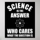 La Science Est La Réponse - Qui Se Soucie De Ce Qu'Est La Question. Cet accessoire de citation amusant est un grand cadeau amoureux des sciences pour les professeurs de sciences, les professeurs de chimie, les professeurs de biologie ou les étudiants. Parfait pour un scientifique, un physicien, un biologiste ou un ingénieur. Es-tu un geek scientifique ou nerd ? Crois-tu à la méthode scientifique ? Aimez-vous l'astronomie, la chimie, l'ingénierie, la biologie ou la physique ? Avez-vous un sens aigu de l'humour ? Alors ce design amateur de science est pour vous !