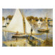 Pierre-Auguste Renoir. La Seine à Argenteuil. Bel paysage aux couleurs chaudes. Il y a un yacht avec une voile blanche sur la rive de la rivière. Les navires naviguent le long de la rivière. Ciel bleu pâle avec nuages. Reproduction d'oeuvres d'art célèbres dans le domaine public.