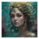 Une scène aquatique sereine présente une femme entourée d'eau tourbillonnante et de poissons, ses cheveux qui se déverse gracieusement autour d'elle. La lumière filtre à travers l'eau, soulignant sa présence éthérée et mystique.