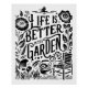 Une affiche de style typographique mignonne pour les jardiniers ou les amoureux de la nature et de la plante, avec des fleurs de jardin, chaise de jardin et panier de fleurs. Une scène de jardin. Offrez-le à une personne avec un pouce vert ou tout simplement qui aime les natures plantes et fleurs.