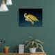 La photo montre une pieuvre nageant sur un fond bleu sarcelle profond.