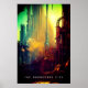 Illustration numérique futuriste, science-fiction avec éléments et couleurs dystopiques, steampunk.