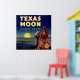 Les agrumes de la marque Texas Moon ont été emballés et expédiés à Donna, Texas, par la Donna Citrus Association. Les producteurs ont commencé à utiliser des étiquettes de caisses de fruits et légumes à la fin du 19e siècle. Les étiquettes étaient collés sur les extrémités des caisses en bois pour identifier le contenu, le lieu ou l'origine, et le nom de l'emballeur. Les Packers ont fait un effort pour présenter leurs produits avec des étiquettes colorés et attrayants afin de générer plus d'affaires sur le marché local. Ces étiquettes colorés ont été collés sur des caisses en bois et expédiés dans tout le pays pendant près de 70 ans. À la fin des années 1950, les étiquettes n'étaient plus utilisés parce que les boîtes pré-imprimées remplacaient les anciennes caisses en bois. Les étiquettes restants étaient rassemblés par des collectionneurs, des marchands et de vieux propriétaires de vergers. Ces étiquettes inutilisés constituent le stock commercial qui existe aujourd'hui.
