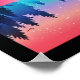 Une affiche avec un beau design graphique représentant un lac paisible avec des cerfs. et de grands pins se reflétant dans l'eau. Les étoiles planent au-dessus.