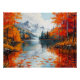 Ce tableau présente un paysage automnal à couper le souffle, avec un lac serein entouré d'un feuillage d'automne vibrant. Les feuilles dorés et cramoisis de bouleaux et d'érables contrastent magnifiquement avec les eaux bleues cool, qui reflètent les couleurs brillantes de la saison. Des montagnes enneigées s'élèvent au loin, ajoutant profondeur et grandeur à la scène. Les feuilles flottants dérivent doucement à la surface du lac, ce qui renforce l'atmosphère paisible et poétique. L’air pur et les teintes chaudes évoquent une journée d’automne parfaite dans l’étreinte de la nature.