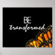 affiche d'art papillon inspirante être transformée citation monarque détail de l'aile papillon photographie sur mur noir pour la décoration à la maison ou au bureau. Photographie originale copyright Ann Powell tous droits réservés.