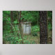 Cette affiche présente une ancienne maison de campagne située derrière une longue ferme abandonnée, entourée d'arbres et de feuilles verts.