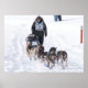Une photo d'une des équipes de traîneaux à chiens arrivant après un UP 200 long et enneigé.
