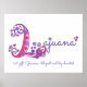 Jolie affiche de nom en monogramme L, parfaite pour la chambre ou la salle de jeux d'une fille dans des tons de rose et de violet. Personnalisez avec votre nom commençant par L, et la signification du nom pour un toucher vraiment personnalisé pour la chambre ou la nurserie de votre enfant, cet exemple est pour le nom Lajuana Un cadeau. Gracieux, diligent et généreux. Jolie impression idéale pour un nouveau-né, un cadeau de baptême ou de shower bébé ou pour la chambre d'un enfant. © Unique monogramme de lettre L avec coeurs et fleurs dessin et conception graphique par Sarah Trett. www.sarahtrett.com pour www.mylittleeden.com