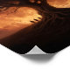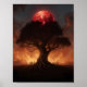 Sous un ciel embrasé par le feu et l'ombre, un arbre colossal étend ses racines profondément dans la terre comme si ancrer la réalité elle-même. Au-dessus de sa couronne se dresse une lune rouge sang, jetant une lueur menaçante qui peint les cieux en cramoisi. Les figures se rassemblent à la base de l’arbre, leurs silhouettes petites contre sa forme vaste et grossière, comme si elles étaient attirées par un rite ancien ou un présage de fin mondiale. La scène se sent éternelle et apocalyptique, image de création, de destruction et de fragile lien entre les mortels et le cosmos.