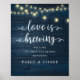 Love is Brewing, Modern Rustic, Dîner de répétition Mariage Poster de bienvenue, en arrière - plan en bois bleu foncé, cottage string lumières thème.