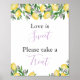 Panneau de table de friandises pour correspondre à mes citrons / papeterie de douche à la lavande dans le même design. Affiché ici pour une douche de mariage, mais tout le texte est entièrement personnalisable. Vous pouvez ajouter ou supprimer des champs de texte en accédant à l'outil de conception. Pour ce faire, "cliquez pour personnaliser davantage" sous les boîtes de personnalisation du texte.