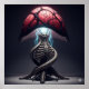 Graphique de haute qualité d'une image d'art xeno représentant une lampe de table comme une fusion d'os et de chair. La base est une structure squelettique tordue, tandis que l'ombrage est un matériau charnu et organique avec une qualité translucide et des veines visibles. Une lumière éthérée et éthérée émane de l'intérieur, lui donnant une présence macabre et alien.
