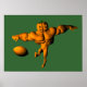 un joueur de football américain avec la tête citrouille frappe le ballon dans la nuit halloween - excellent début à votre fête halloween dans votre club house