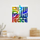 C'est une grande affiche qui représente le mot Paix en arabe, hébreu et anglais, avec un effet arc-en-ciel numérique.
