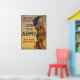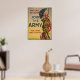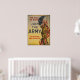 Une affiche de recrutement datant de la Première Guerre mondiale montrant un soldat debout à côté d'un drapeau américain et soufflant un bouton.