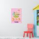 Une affiche personnalisée avec une arche de Noé d'animaux mignons remplie d'animaux sauvages sur un fond à pois roses. Un papillon, un lion et quelques tigres sont également suspendus autour du bateau. Illustration d'art dans le style de la nurserie.