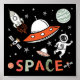 L'art amusant et funky SPACE travaille avec astronaute, planètes, vaisseau fusée et fontes dessinées à la main dans des couleurs funky. Idéal pour une fille ou un garçon !
